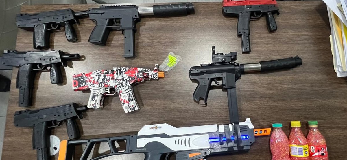 pistolas de hidrogel y de bolitas.